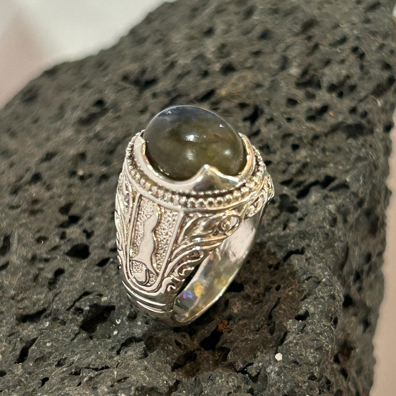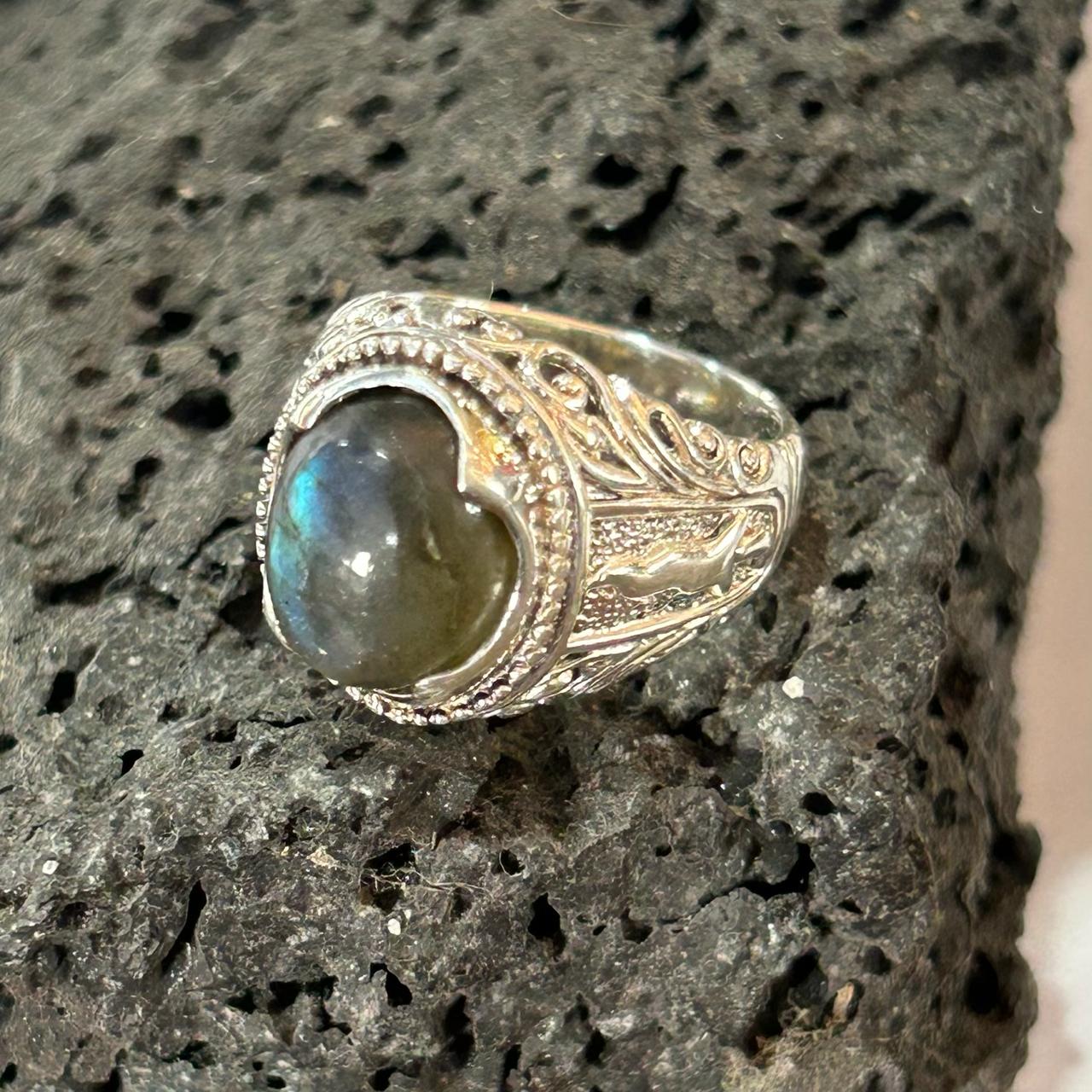 Aurielle Labradorite Solitaire Ring menghadirkan keindahan Labradorite dengan efek cahaya khas yang berubah lembut saat terkena pantulan sinar. Kilau labradorescence-nya menciptakan kesan misterius namun refined subtle, tetapi tetap memikat.
